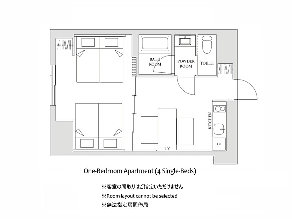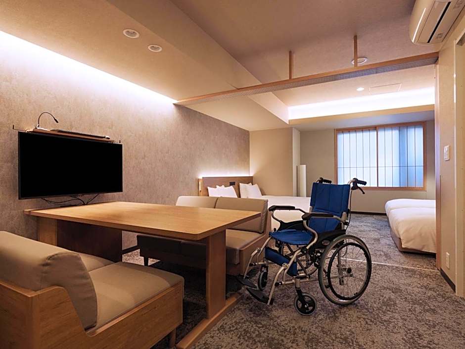 The quadruple room provides air conditioning, tatami, as well as a private bathroom featuring a bath and a shower. Meals can be prepared in the kitchen, which comes with a stovetop, a refrigerator, kitchenware and a microwave. The quadruple room features carpeted floors, a seating area with a flat-screen TV, a dining area, a wardrobe, as well as a safe deposit box. The unit offers 2 beds and 2 futons.